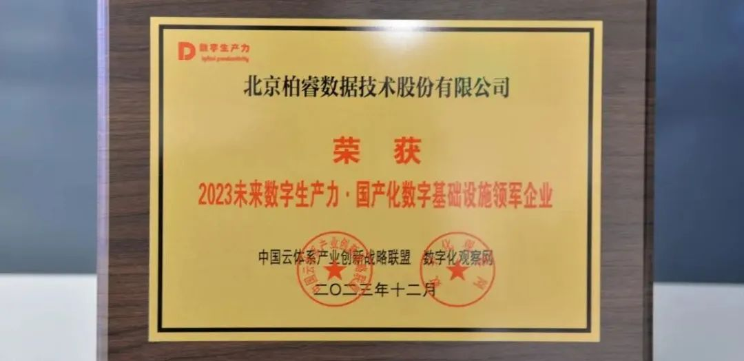期间,备受瞩目的“2023 未来数字生产力大奖”重磅揭晓。柏睿数据荣获“2023未来数字生产力·国产化数字基础设施领军企业”,并成为中国云体系产业创新战略联盟理事单位。
